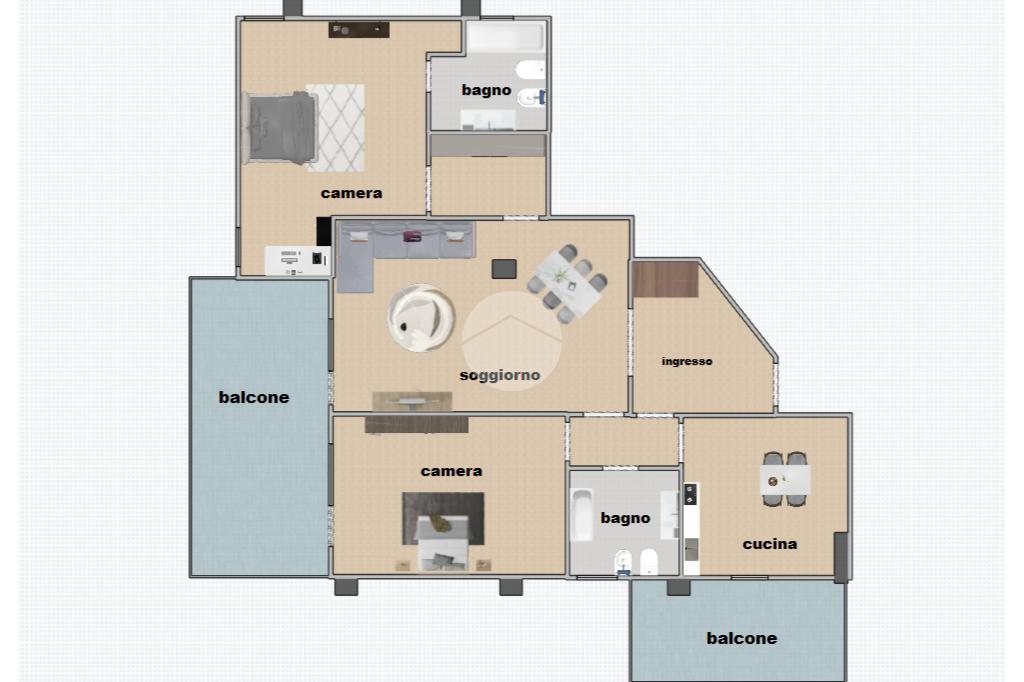 L'appartamento, da ristrutturare, rappresenta una tela bianca perfetta per chi desidera cucirsi addosso la casa dei sogni, valorizzando la distribuzione ottimale degli ambienti:Un ampio e luminoso soggiorno che si affaccia su un balcone panoramico, ideale per cene al tramonto con vista e dotata di una comoda veranda, perfetta per creare una zona lavanderia o un giardino da due ampie camere da letto. La camera padronale è una vera suite, completa di bagno privato e una pratica nicchia per armadio a muro.Oltre al bagno in camera, l'appartamento dispone di un secondo bagno principale ben disimpegnato.